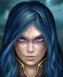 une jeune fille frêle aux cheveux bleus....